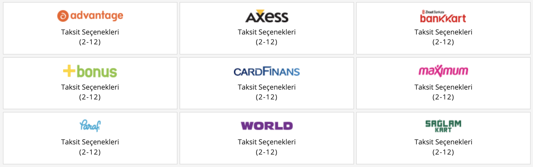 9 Farklı Kredi Kartı İle Taksitli ve Tek Ödeme